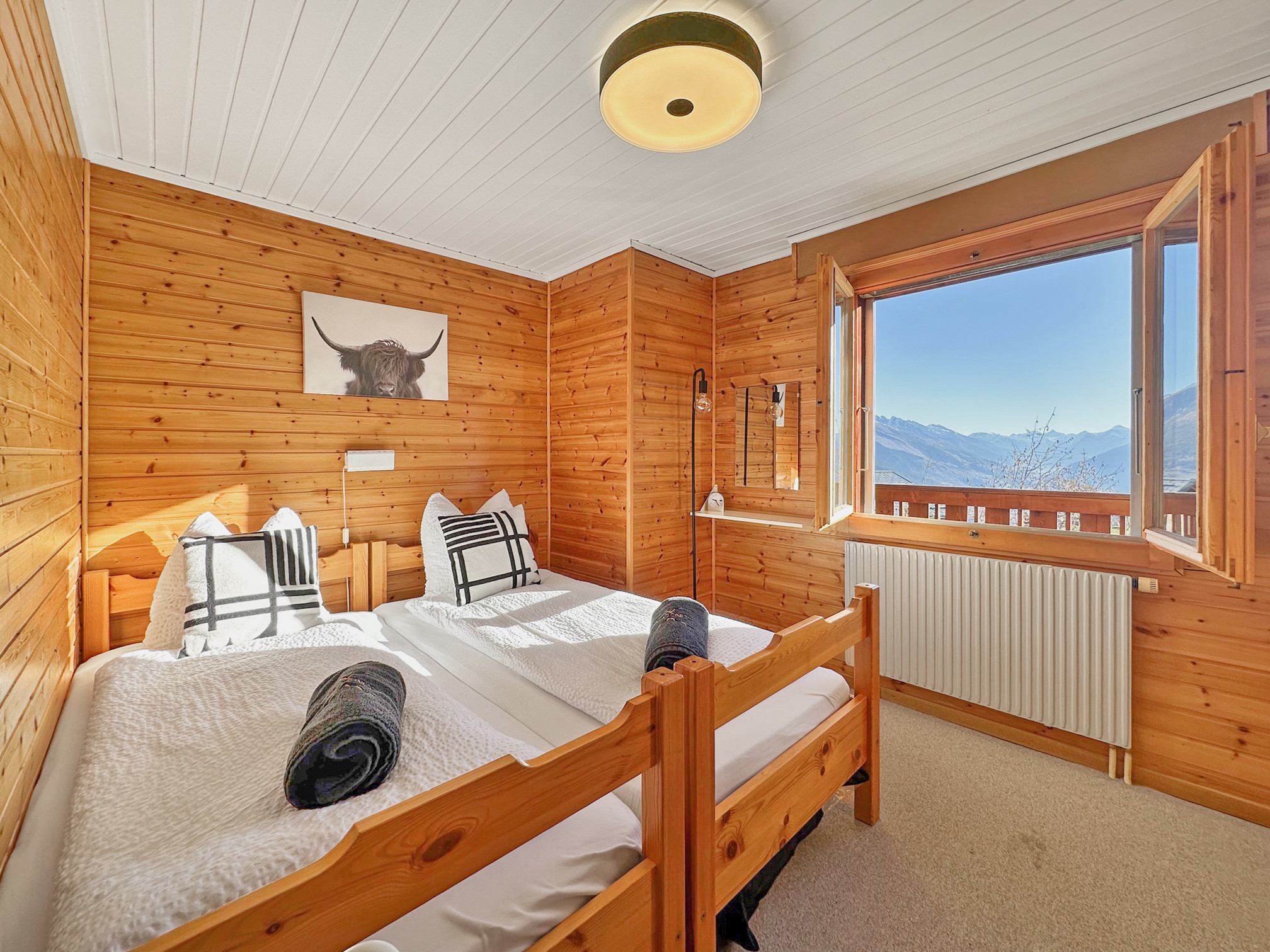 Am Eingang des Crans Montana Resorts gelegen, in der Stadt Randogne, Ihnen dieses Chalet in privilegierter Lage einen einzigartigen 180°-Blick auf die schönsten Gipfel der Alpen und ist gleichzeitig nur wenige Minuten vom Zentrum des Resorts entfernt.