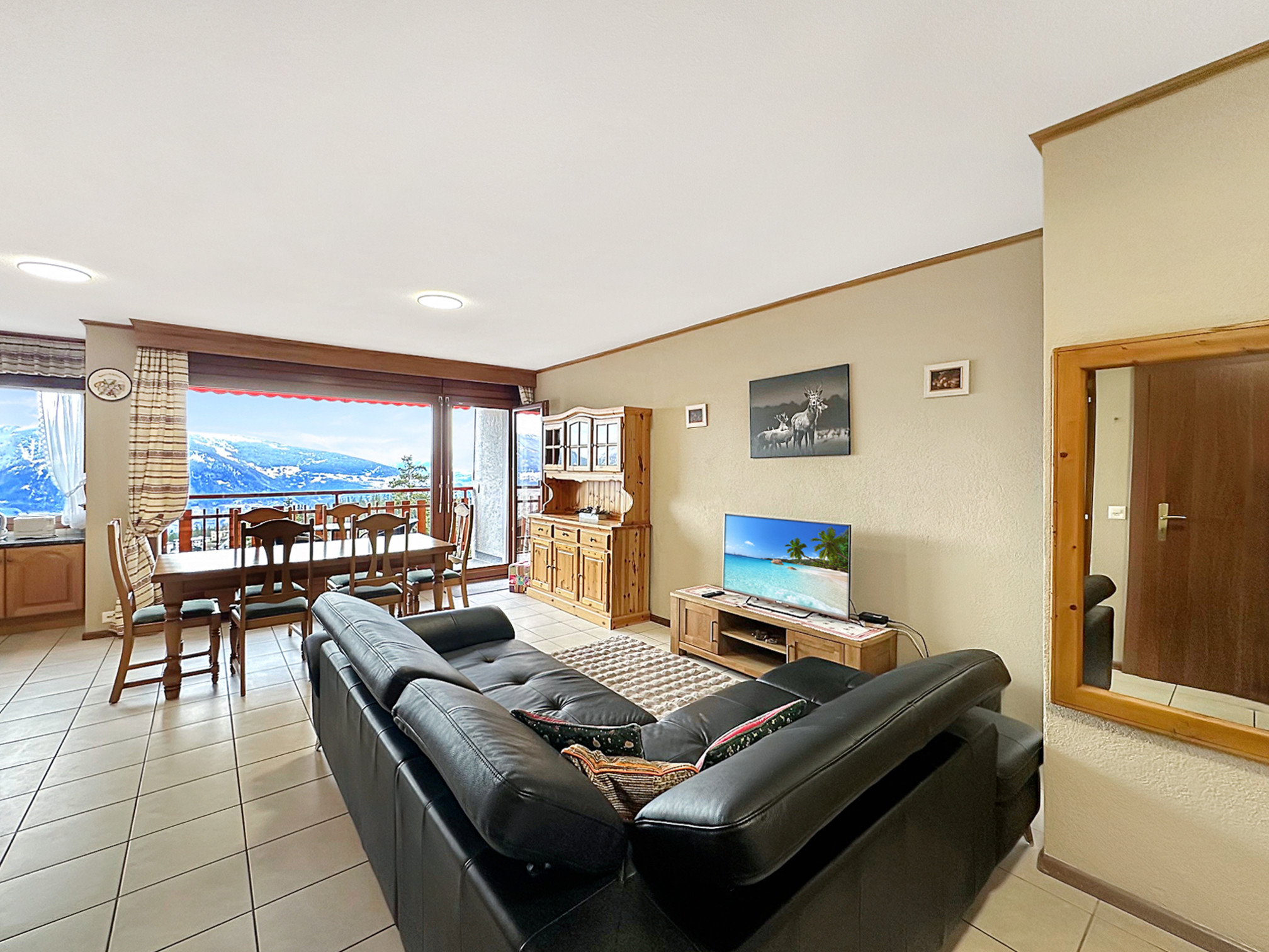 In the highly sought-after Rhône Residence in Crans-Montana, this spacious 3.5-room apartment welcomes you year-round for vacations combining comfort, nature, and accessibility.