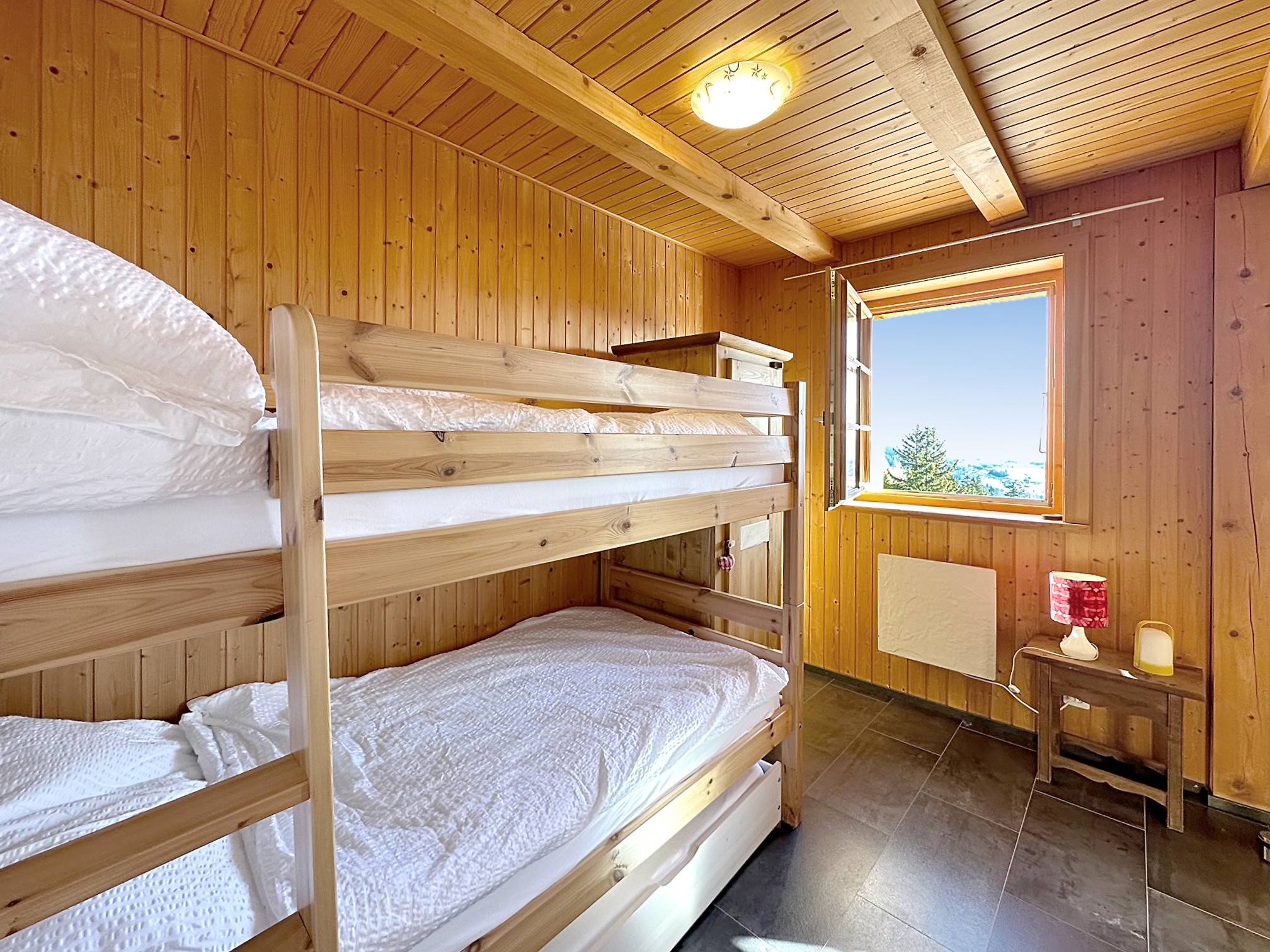 In winter, no possibility of accessing the chalet by car, you have a reserved parking space 200 meters below the chalet and must walk up the non-cleared part.