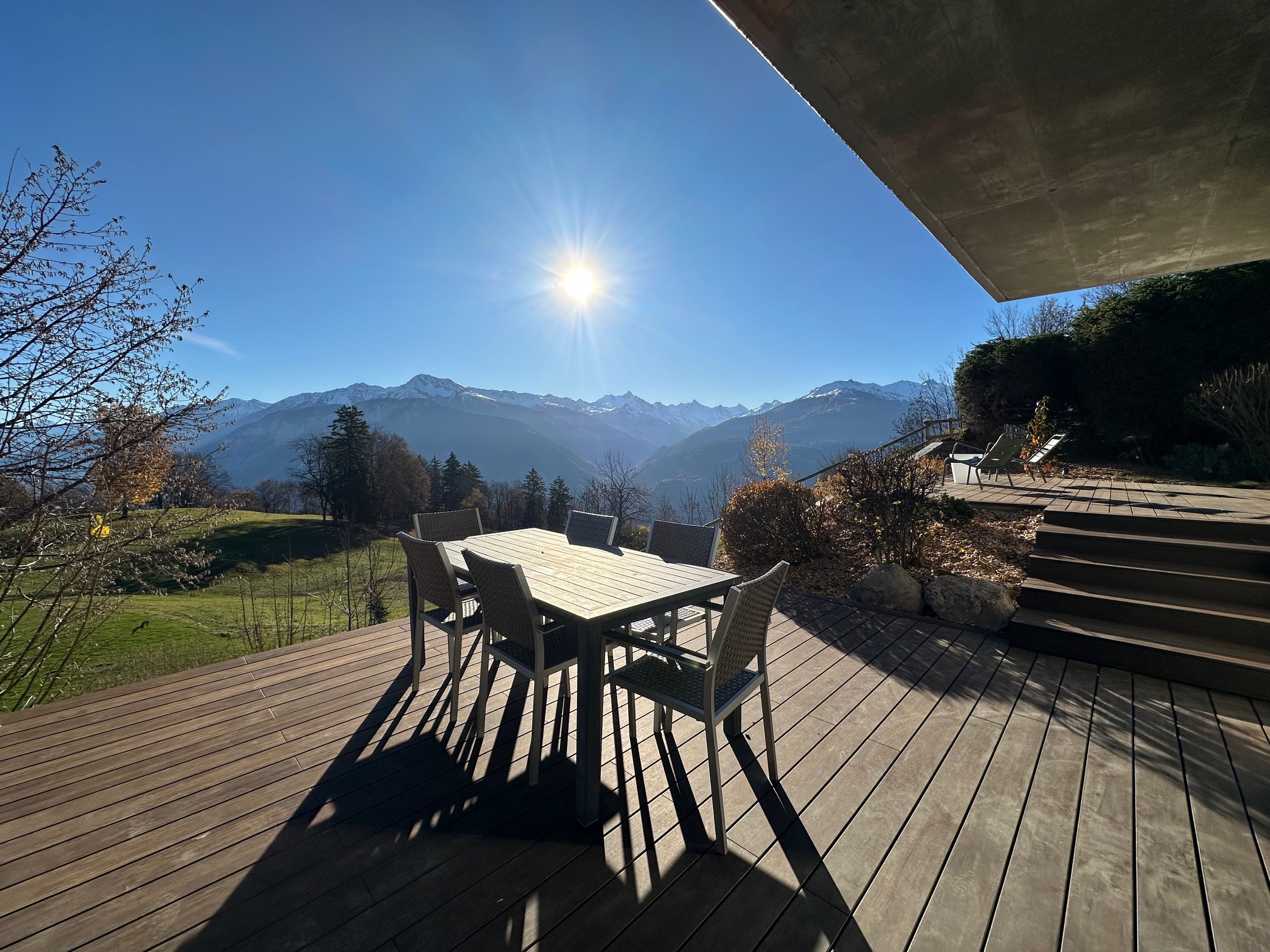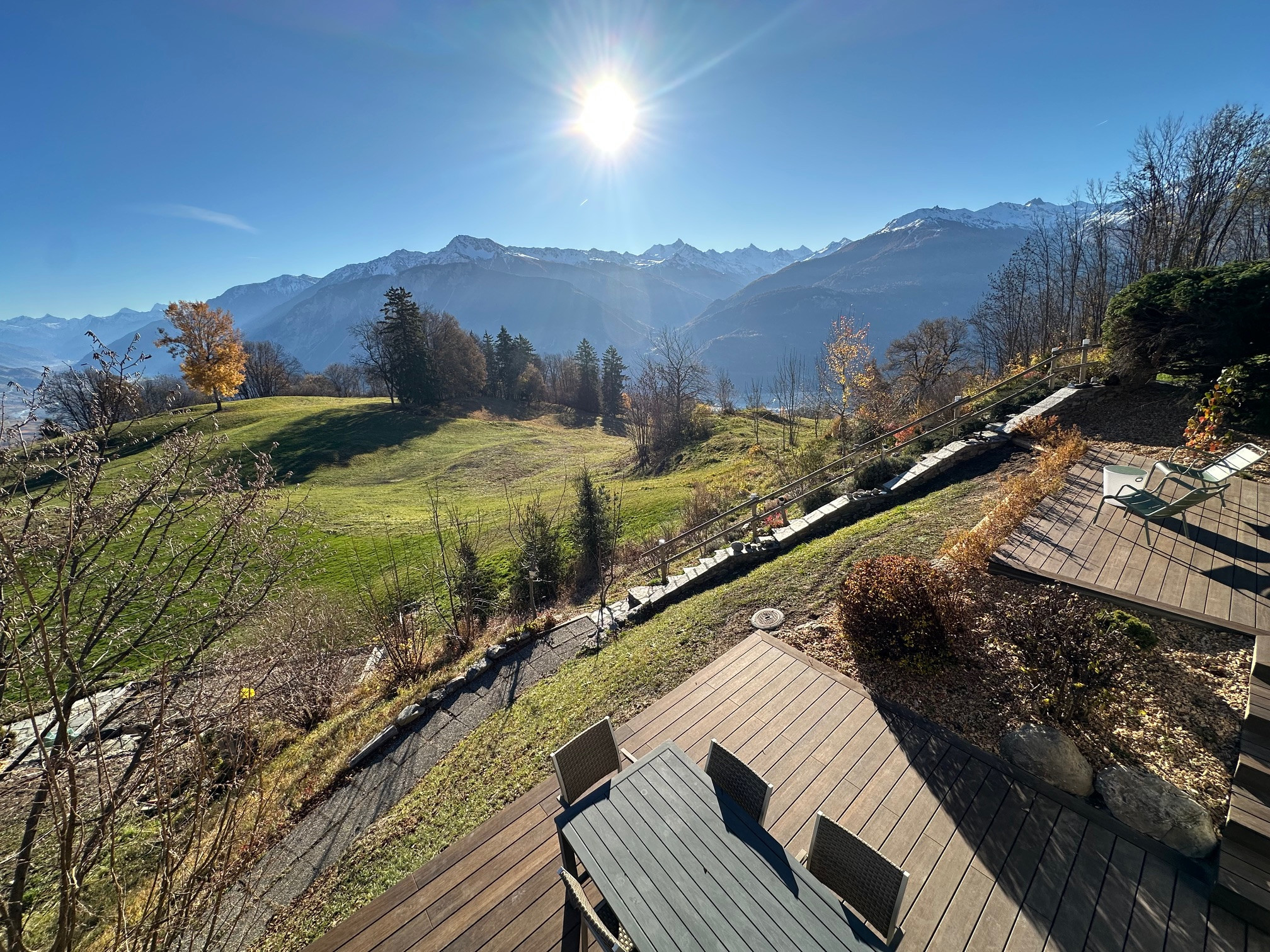 Located at the entrance to the Crans Montana resort, in the town of Randogne, this chalet located in a privileged location offers you a unique 180° view of the most beautiful peaks of the Alps while remaining just a few minutes from the center of the resort.