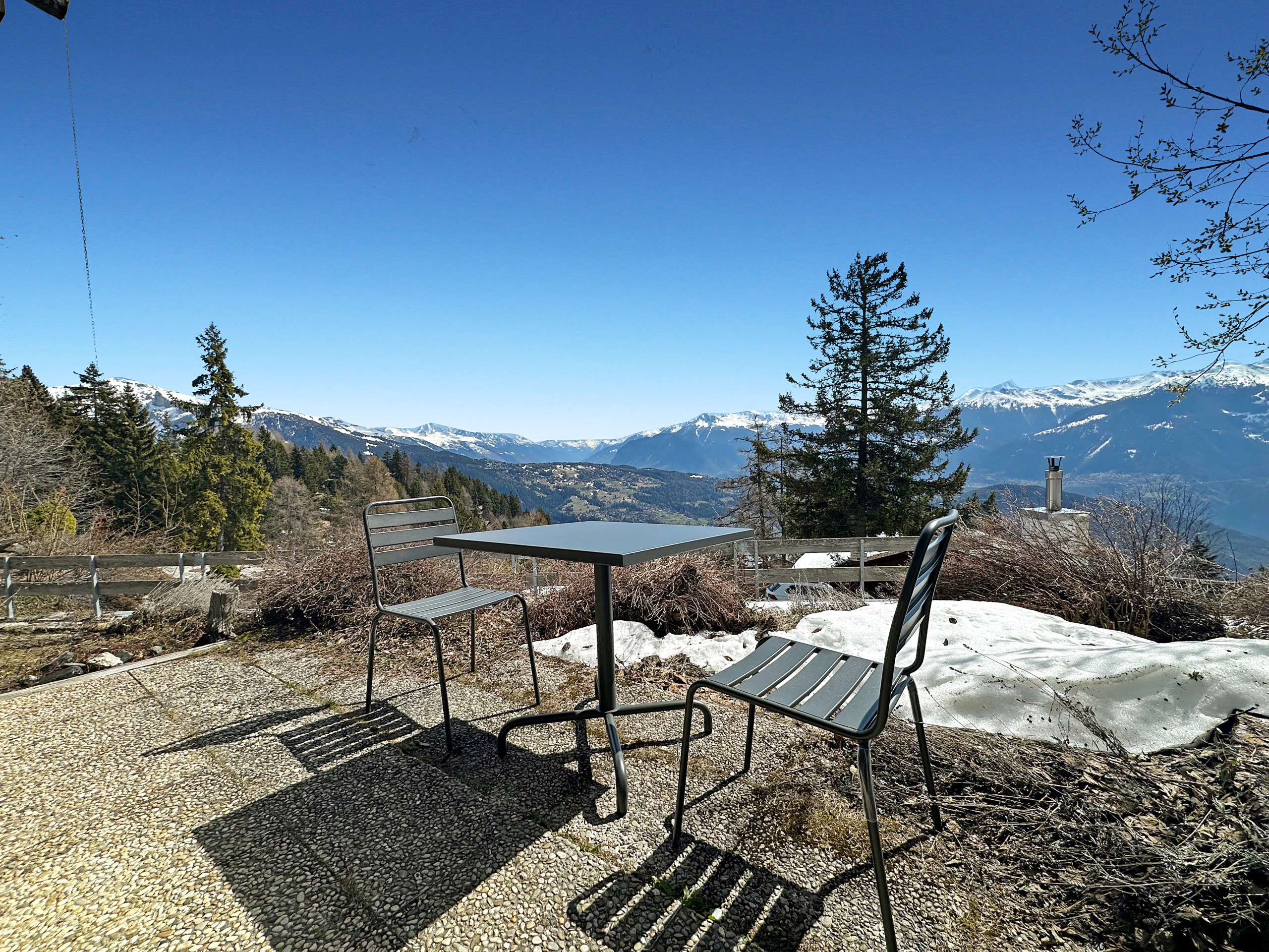 Petite terrasse plein sud, offrant une vue totalement dégagée sur les Alpes suisses