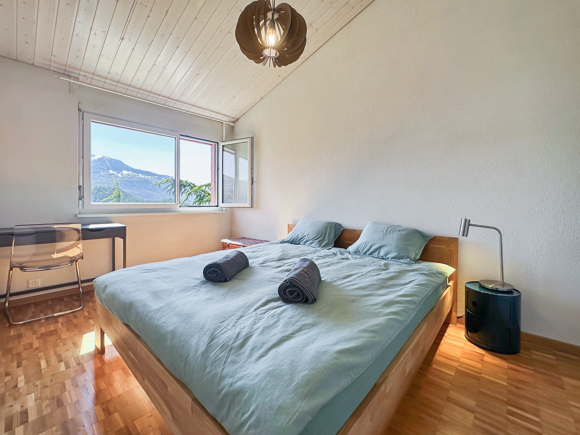 Idéalement nichée dans un quartier paisible, cette maison vous séduira par sa vue panoramique exceptionnelle sur les Alpes et son ambiance relaxante, parfaite pour un séjour en couple, en famille ou en télétravail.